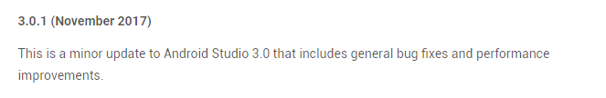 然而今天AndroidStudio给我推送稳定版本的3.0.1,下面是它的新版更新提示语
