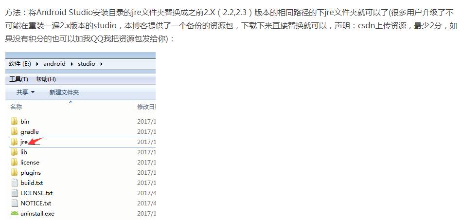 如果你想从2.3.x升级使用3.x,那么不建议你使用替换jre的方式去处理输入法问题,因为操作起来比较繁琐,后面升级的时候你还得注意替换回原来的jre,否则升级后将无法正常使用AS,最简单的方式是在使用AndroidStudio的时候切换到Windows自带的中文输入法即可,相对而言,这样会方便很多,但可能就没有第三方输入法用起来那么顺手;