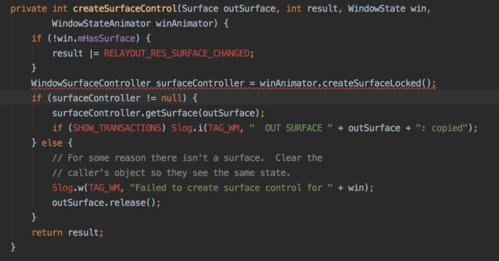 relayoutWindow,addWindow,Surface一气呵成,流程比较简单,注意一下SurfaceHolder,一般使用SurfaceView时候都是操作SurfaceHolder.Callback,它作为内部类一开始就创建出来了,而在native surface创建完毕之后调用SurfaceHolder.Callback.surfaceCreated。