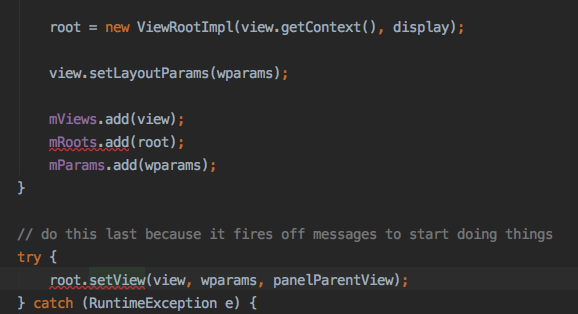 继续下一步调用方法 ActivityThread.handleResumeActivity -> WindowManagerImpl.addView创建出ViewRootImpl。