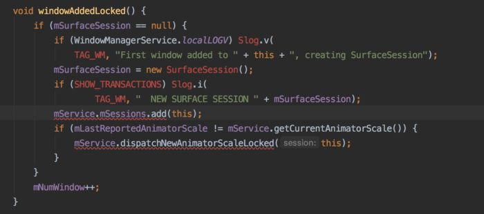 由第一步7中WindowManagerImpl.addView -> … ->WindowState.attch,创建出WindowToken用来标识Window类型,如子窗体(1000-1999),应用窗体(1-99)和系统窗体(2000-2999)。再创建WindowState——WMS端的Window对象,它持有Session与WindowManager通信,更重要的是调用Session.windowAddedLocked创建出SurfaceSession。