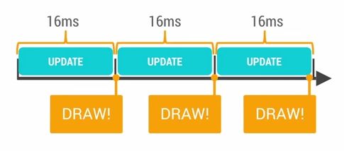 Android系统每隔16ms发出VSYNC信号(vertical synchronization --场扫描同步,场同步,垂直同步),触发对UI进行渲染,如果每次渲染都成功,这样就能够达到流畅的画面所需要的60fps,为了能够实现60fps,这意味着程序的大多数操作都必须在16ms(1000/60=16.67ms)内完成。