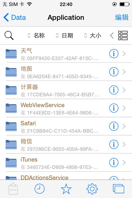在已越狱的 iPhone 上打开 Cydia,搜索并安装 iFile 或者 Filza等文件浏览 App,打开 iFile 或者 Filza,跳转到本地 App 安装目录:/var/mobile/Containers/Data/Application/,此时,你可以看到当前 iPhone 上已安装的 App 列表,如下图所示: