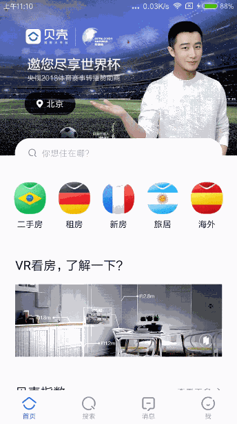 以上只是一个新概念的普及。本文不会教你如何实现VR看房的功能,因为,我也不会。。。那能教你什么呢?使用陀螺仪移动图片Drawable。打开贝壳找房App就能看到文中所示的效果。