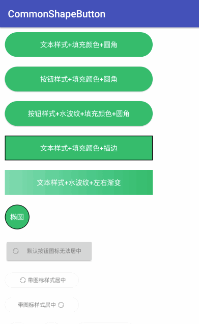 到这里我们就完成了 CommonShapeButton 的全部设计和实现,以下是效果图: