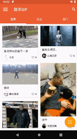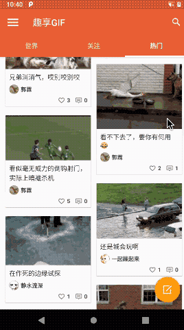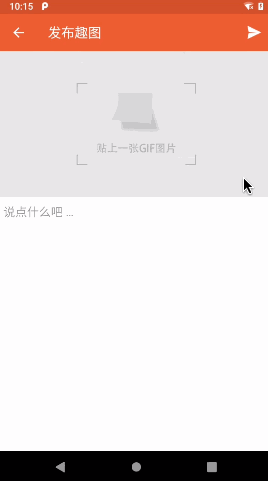 目前发布GIF的功能还比较简单,暂时只支持从相册选择GIF图和从SD卡选择GIF图这两种方式,默认是从相册中选择。当然,读取相册是一定要申请SD卡访问权限的,这里我在请求运行时权限时进行了非常棒的逻辑处理,保证不管用户是同意还是拒绝都会进行合理的界面提醒。大家在自己实现运行时权限处理的时候也可以参考这种做法。