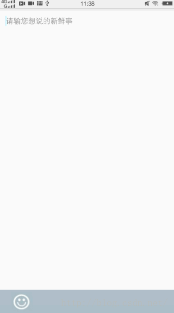 我们先来看上图,通过上图我们可以看出,当表情显示时,我们点击表情按钮,隐藏表情显示软件盘时,内容Bar有一个明显的先向下后恢复的跳闪现象,这样用户体验相当的差,我们希望的是下图的效果,无论怎么切换都不会有跳闪现象,这就是我所有说的键盘与表情切换的跳闪问题。