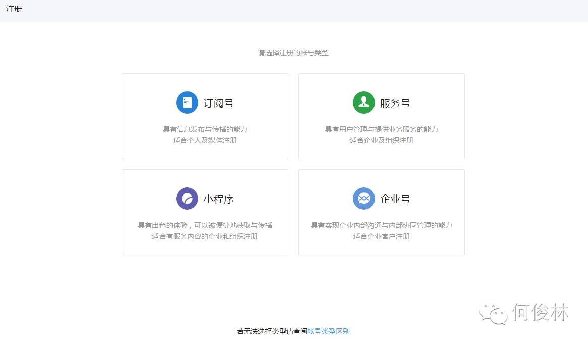 可以看到,除了常规的订阅号、服务号和企业号之外,还出现了「小程序」的选项。