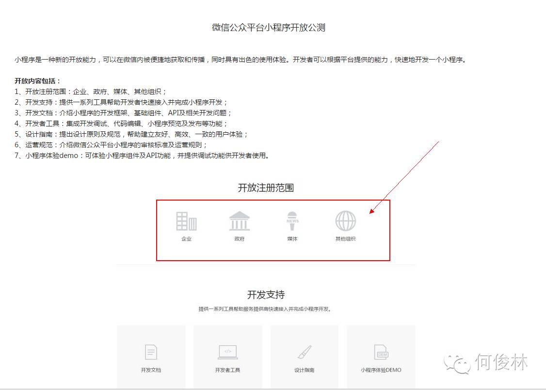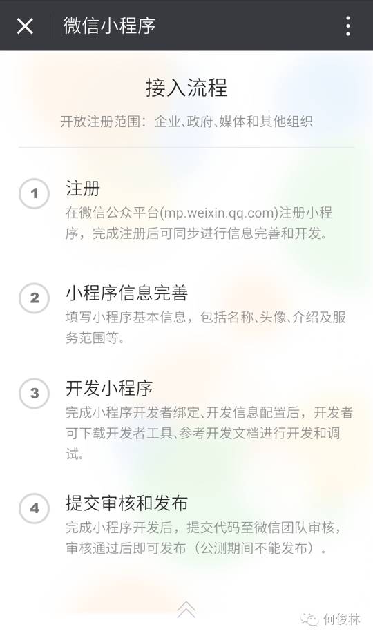 在微信官方给出的图片中,能看到小程序的简单介绍和注册指引。