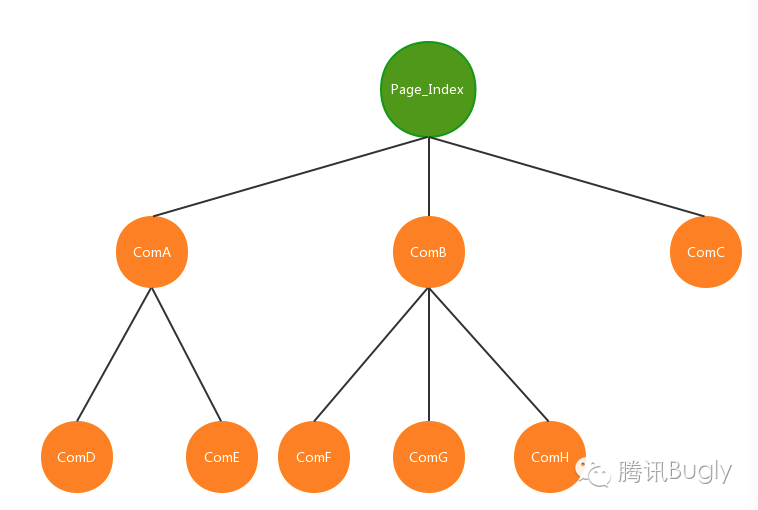Index页面引入A,B,C三个组件,同时组件A和B又有自己的子组件D,E,F,G,H。