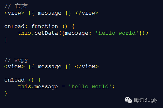 wepy使用脏数据检查对setData进行封装,在函数运行周期结束时执行脏数据检查,一来可以不用关心页面多次setData是否会有性能上的问题,二来可以更加简洁去修改数据实现绑定,不用重复去写setData方法。代码如下: