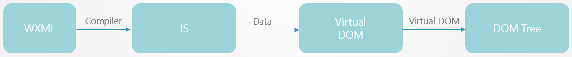 视图层使用WebView渲染,逻辑层使用JSCore运行。