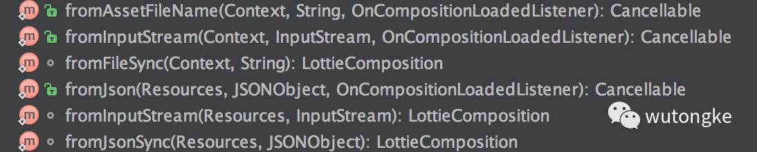 Lottie使用LottieComposition来作为After Effects的数据对象,即把json文件映射到LottieComposition,LottieComposition中提供了解析json的静态方法: