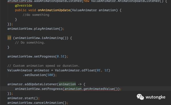直接委托给了lottieDrawable,lottieDrawable中有private final ValueAnimator animator = ValueAnimator.ofFloat(0f, 1f);
