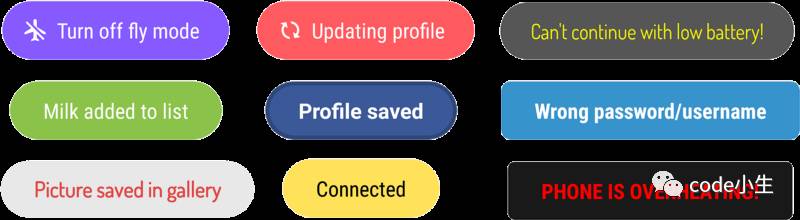 多个自定义选项让你的app和用户体验与众不同!用代码或者styles.xml去定义你的Toast样式。