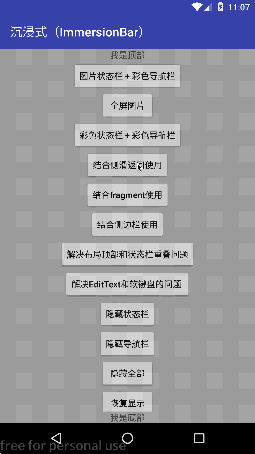 至此,ImmersionBar库的用法与原理都讲完了。网上关于沉浸式的介绍铺天盖地,但是很少有人把它们封装起来,当开发者调用的时候还得自己去写大量代码,消耗大家时间。写这个库的目的就是方便大家的开发,解决大家在沉浸式方面出现的问题。如果还有不懂得地方可以去demo里看看,或者直接底下留言!