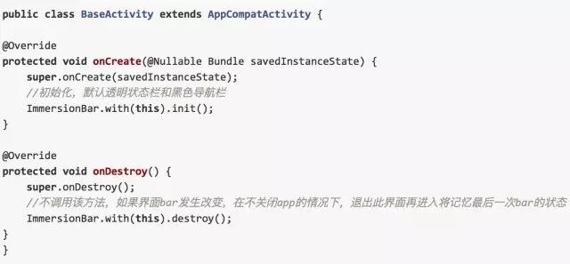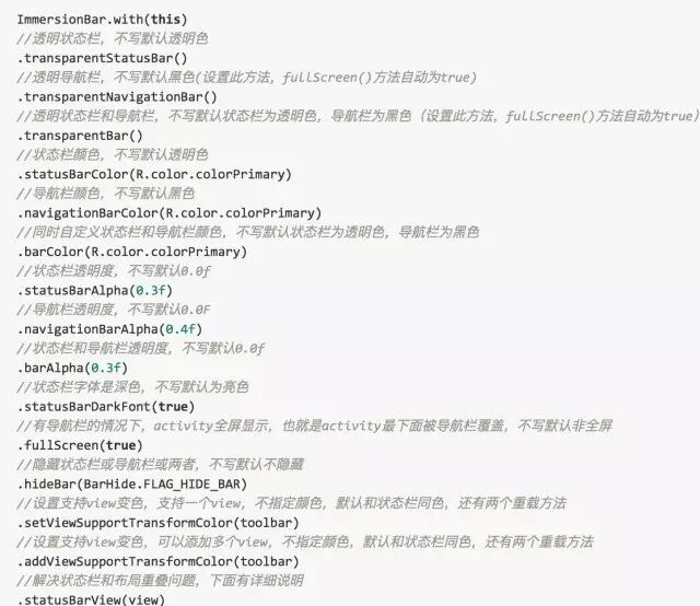 ImmersionBar除了这些特性之外,还有其他特性哦,这里就不一一指出了,大家参考高级用法的注释,可以去实现看看哦,下面就来分析源码吧