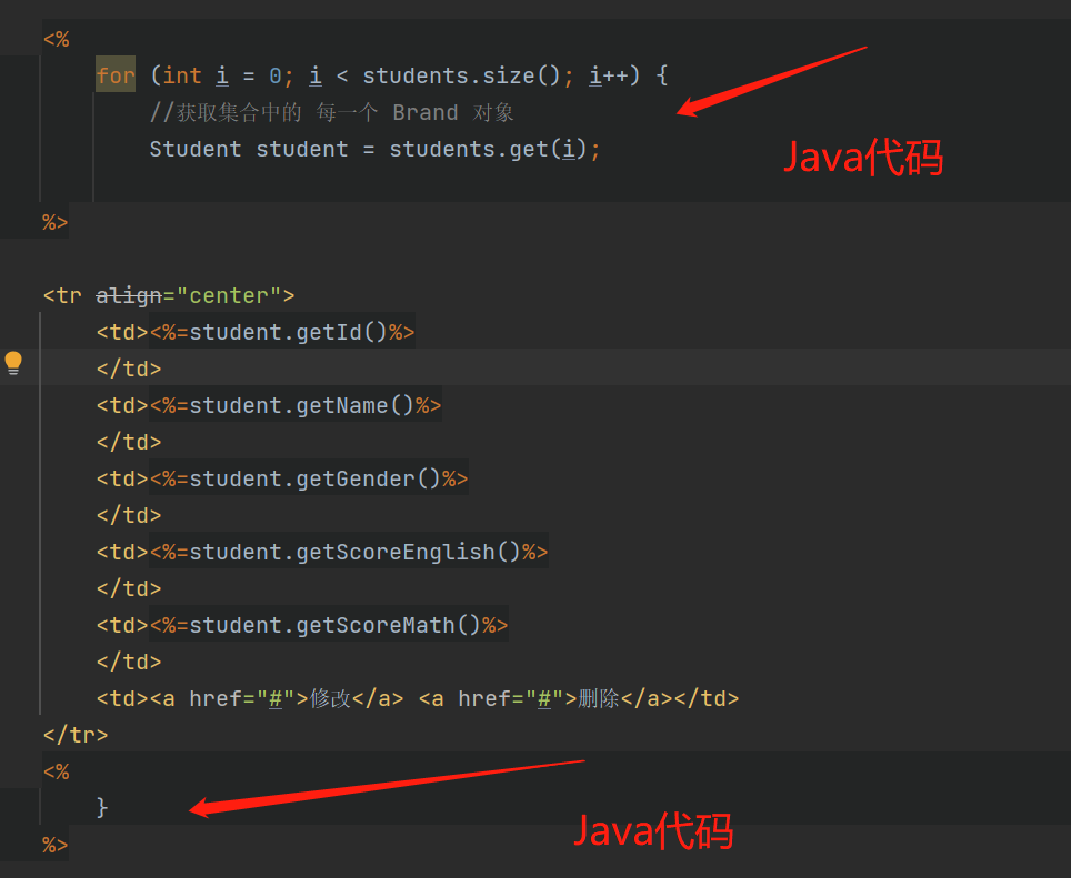 前端开发工程师每天都在和标签打交道,他们对标签是更加敏感的,所以出现了 JSTL 标准标签库,使用标签替代了 JSP 页面中的 Java 代码,提高了代码的可读性。如下: