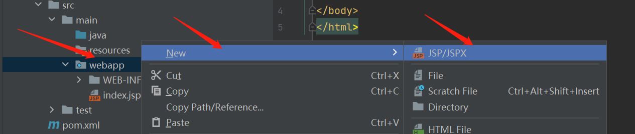 在项目的 webapps 文件目录下创建 jsp 页面,如图: