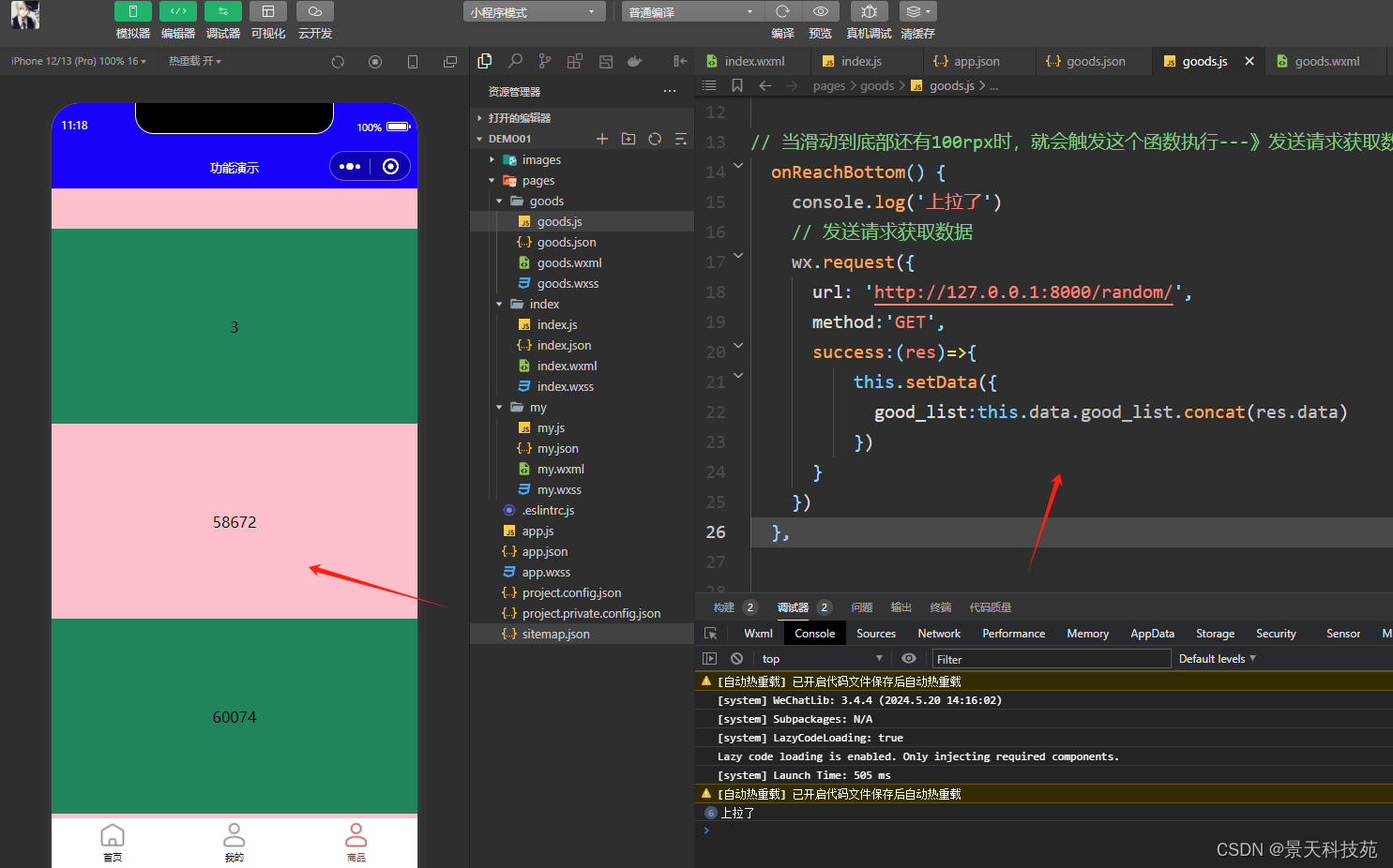 滑动加载数据,在js代码中是固定的函数名 onReachBottom