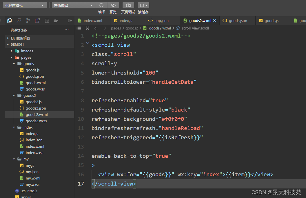 <view wx:for="{{goods}}" wx:key="index">{{item}}</view>