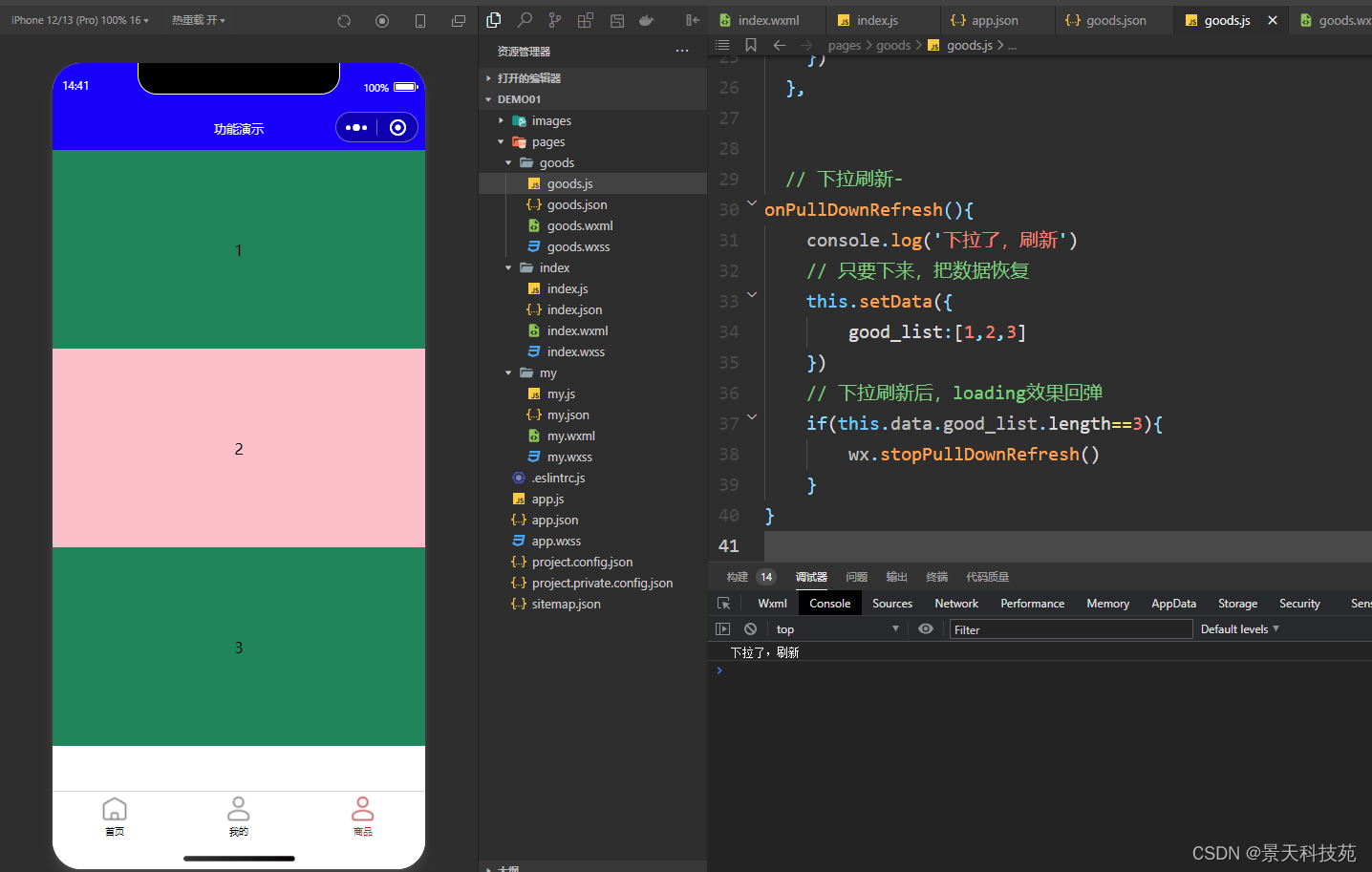 上面我们讲到了下拉加载更多数据,如果我们想恢复到最初的默认怎么办,此时就用到了下拉刷新