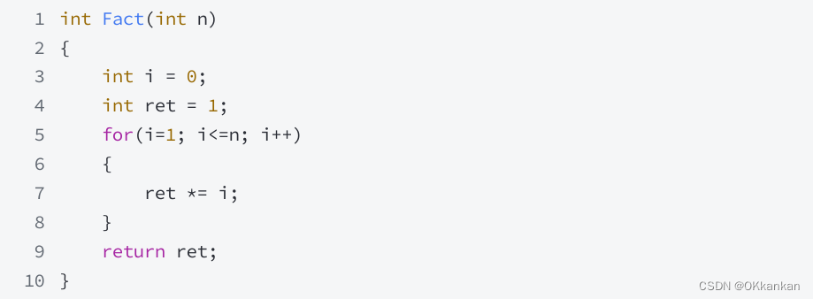 return n * Fact(n - 1);//相当于是多次调用这个函数,形成一个循环,不断地累乘