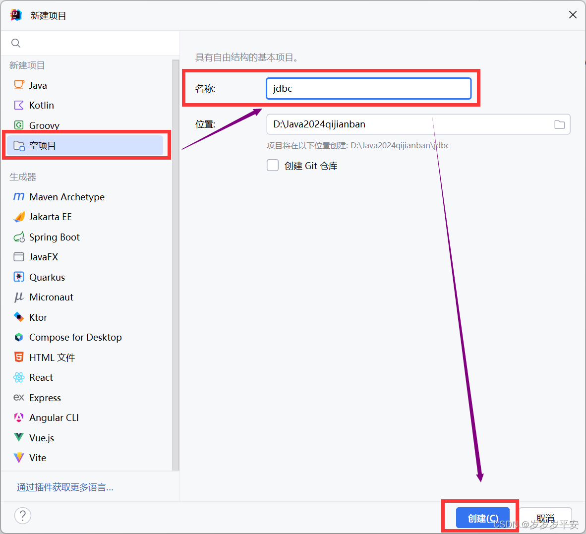 0、创建工程,并导入对应的驱动 " jar 包 "。