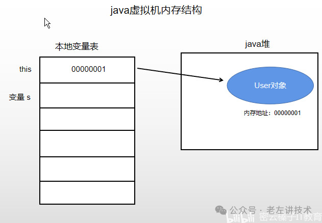 其实this和变量u、u2是一样的,也会存储到本地变量表中,存储的也是对象的地址。比如: