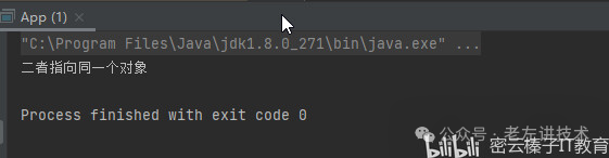 由于==运算符用于引用类型时,只有当引用指向的是同一个对象时才为真,运行输出: