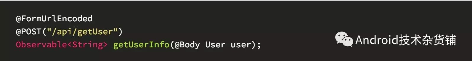 可能最开始接触Retrofit的同学有一个理解错误,那就是@Body标签的内部,可能是把每一个属性取出来,以表单的形式传给服务器的(最开始我也是这样认为的,但是一看源码就知道,其实不是这样的),就像使用@Field标签和@FieldMap标签一样,所以在使用@Body标签的时候,会这样写: