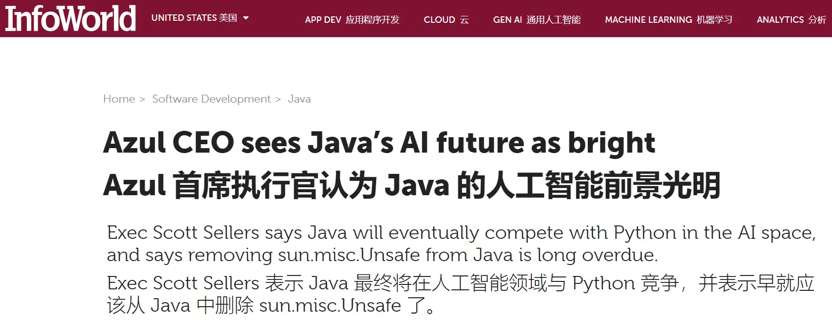 InfoWorld 特约编辑 Paul Krill 最近采访了 Azul 首席执行官 Scott Sellers,谈及 Java 在蓬勃发展的 AI 领域的地位以及在当今软件世界中的地位。Azul Systems 是一家专门提供 Java 技术的计算机软件开发公司,与 Oracle 保持着竞争关系。